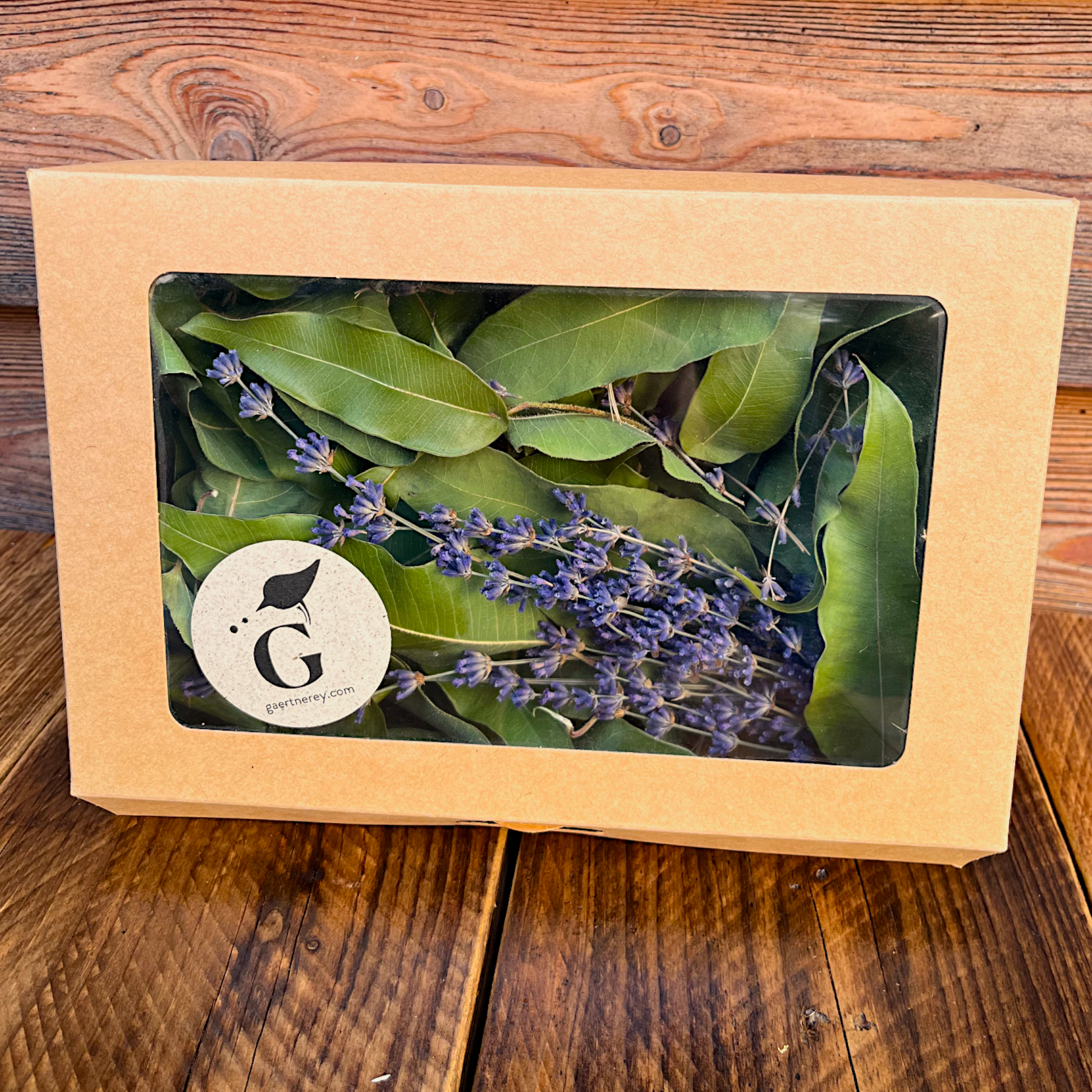 Duftend, zart und wirkungsvoll – unser unbehandeltes Blatt & Duft-Konfetti vereint die aromatische Frische des Citriodora-Eukalyptus mit feinem Lavendel aus eigenem Anbau. Diese handverlesene, natürliche Eukalyptusblatt-Lavendelmischung bringt eine frische Duftnote in Dein Zuhause – pur, natürlich und stilvoll verpackt.