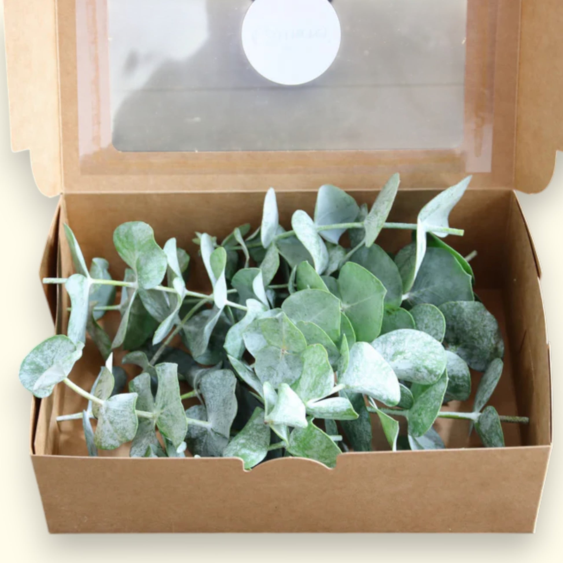 In jeder Box findest du mindestens 15 frische Eukalyptus-Zweigspitzen – direkt aus unserer Gärtnerey zu dir nach Hause. Die Spitzen sind etwa 10 cm lang und eignen sich perfekt zum Stecken, Streuen oder als Highlight in kleinen Sträußen. Du kannst sie frisch verwenden oder ganz entspannt in der Box trocknen lassen – so bleibt der Eukalyptus lange schön und vielseitig einsetzbar.